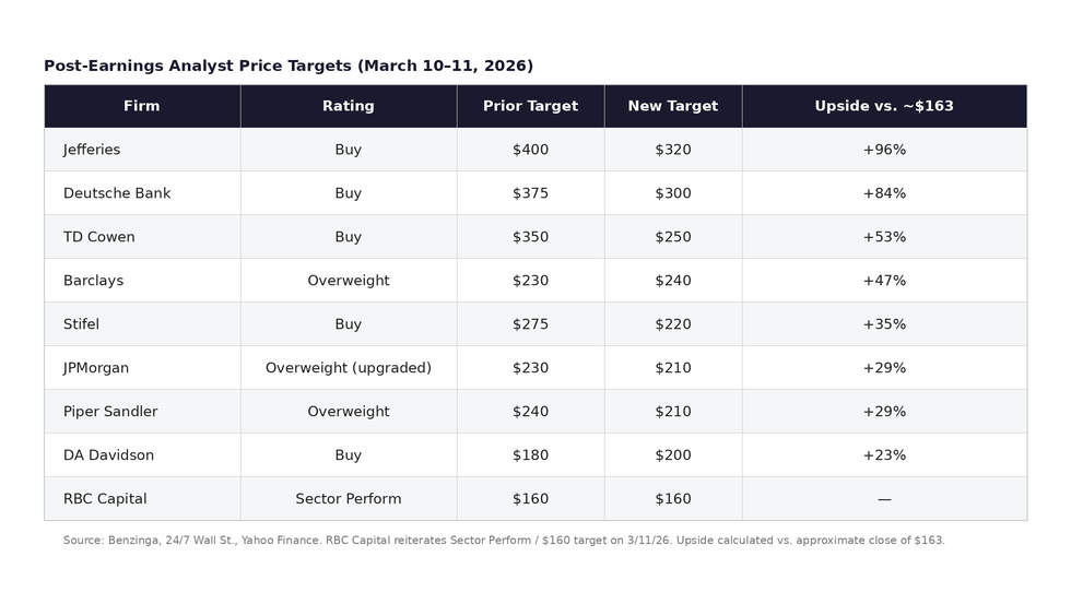 - Wall Street cut targets post-earnings, but most analysts still see 30–90% upside from current levels.
